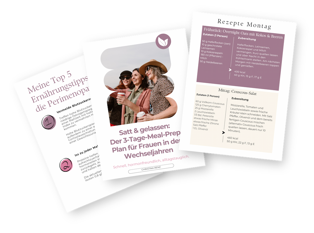 Satt & gelassen: Der 3-Tage-Meal-Prep-Plan für Frauen in den Wechseljahren hilft dir, Heißhunger und Müdigkeit zu reduzieren – ohne Diätstress und ohne Perfektion.